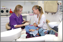 הכרות של הילד עם הצוות והמרפאה, מתן הסברים על צחצוח שיניים ותזונה נכונה והקנית הרגלים נכונים לחיים, בשלב הבא מתבצעת בדיקה קלינית ובחלק מהמקרים גם צילומי רנטגן לצורך אבחון מדויק. לאחר מכן יינתן להורים ולילד הסברים על הצורך הטיפולי והאופן בו מומלץ לבצע את הטיפול.